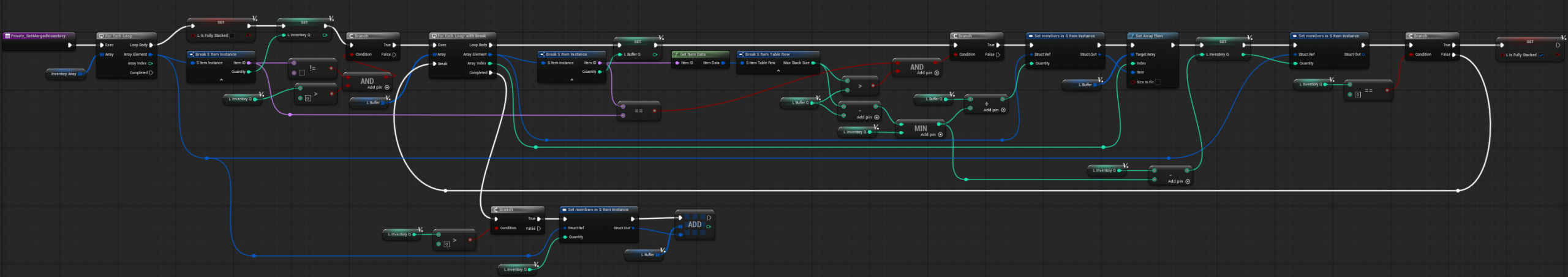 Ce graphe est imbuvable et c’est juste la partie stacking de la fonction de tri des inventaires, me reste à écrire toute la partie tri. J’aurais fait ça en 20 lignes de C, je le garde pour mémoire, peut-être que je ferai pire un jour mais il faut bien se rendre compte que ce machin est la version épurée où j’ai créé toutes les variables locales possibles pour éviter de tirer des spaghetti à travers tout !